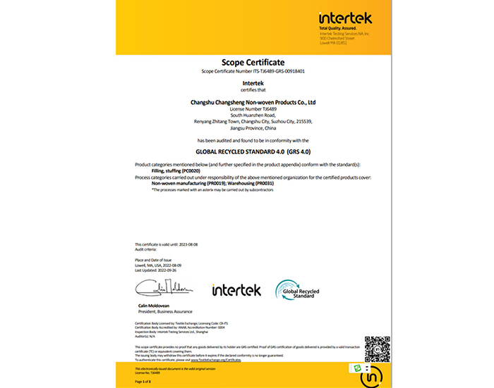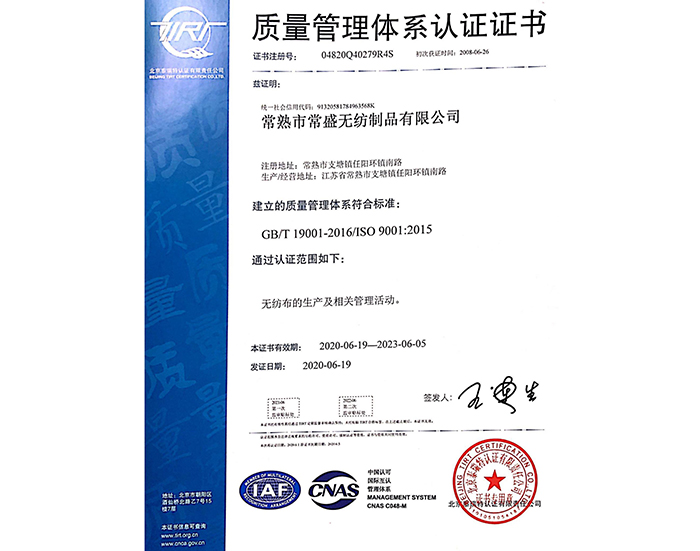 常熟市常盛無紡制品有限公司座落在中國無紡名鎮——任陽鎮,擁有生產、倉儲車間11200平方米,通過ISO9001、ISO45001、ISO14001體系認證。公司具有15年的無紡產品生產經驗,專注于紡絲棉的生產。產品廣泛采用GRS認證的環保材料,通過bluesign藍標認證,充分體現環??沙掷m理念和價值觀,與世界500強企業保持長期良好的合作。